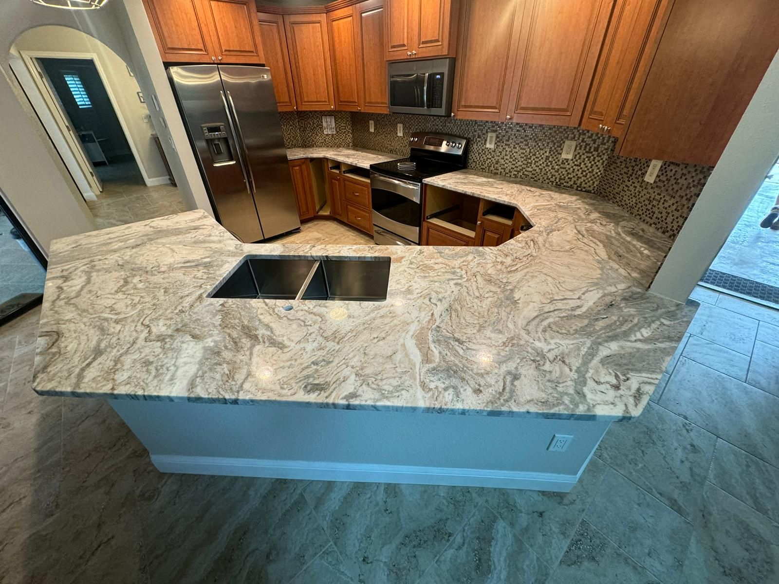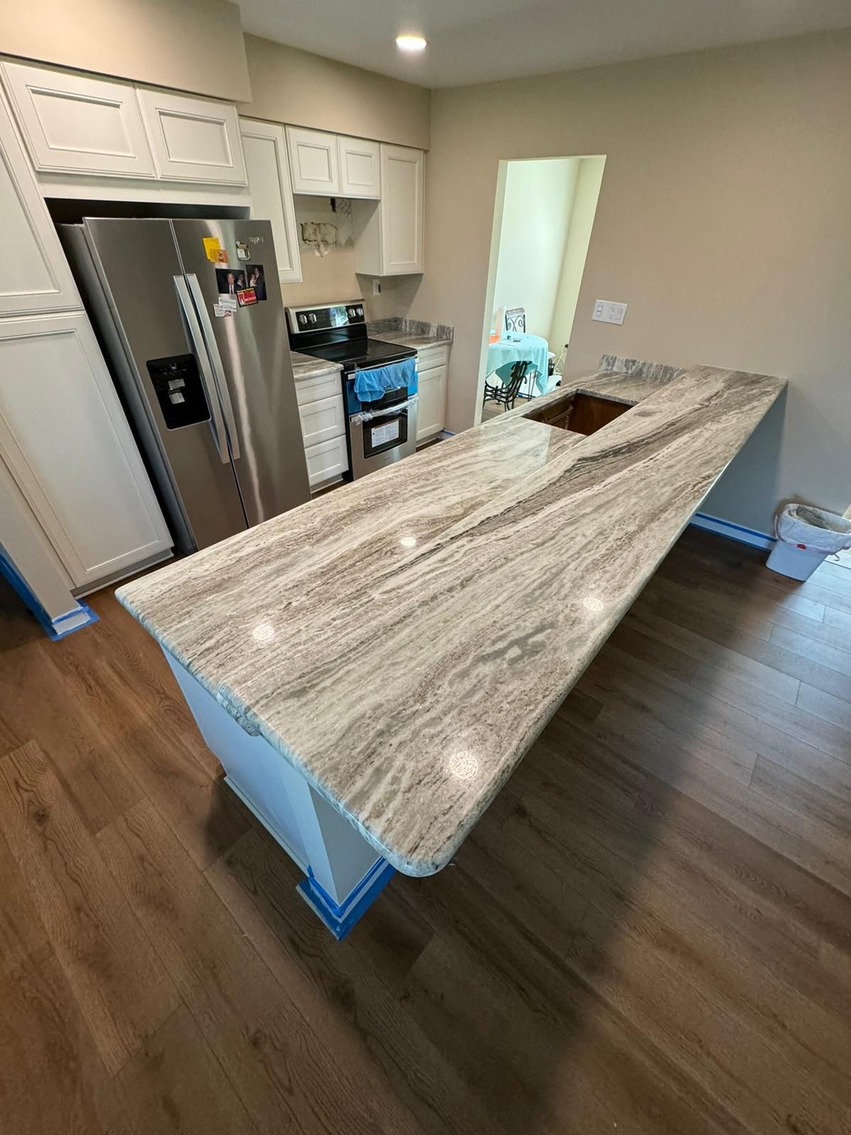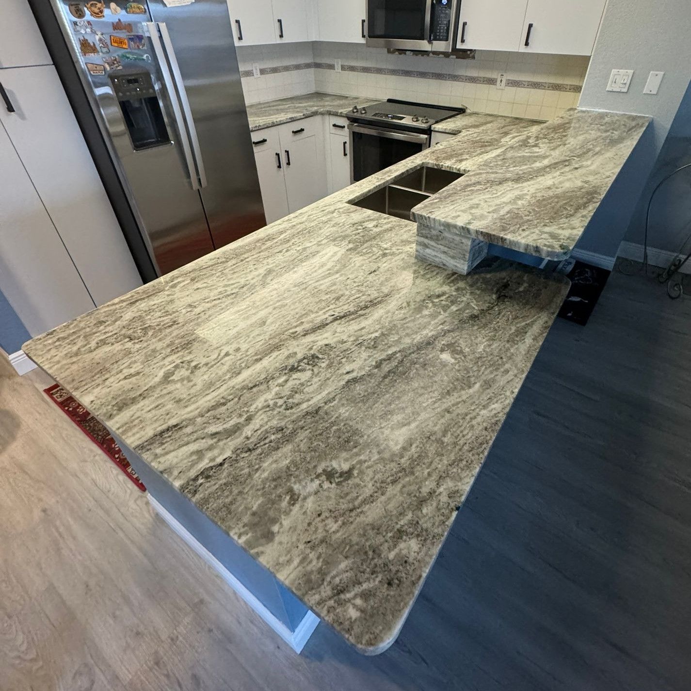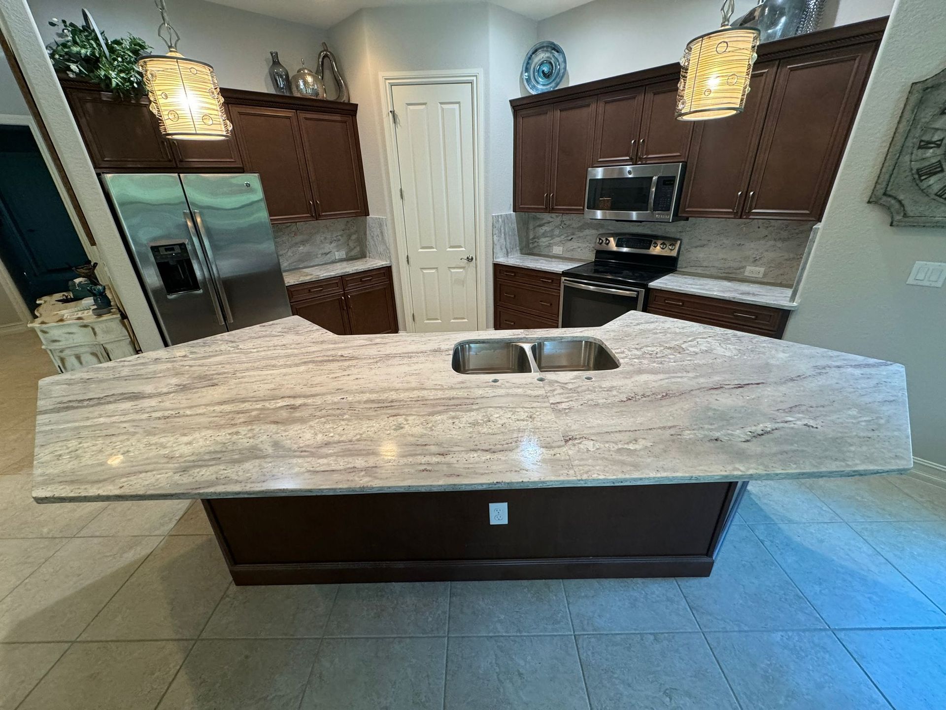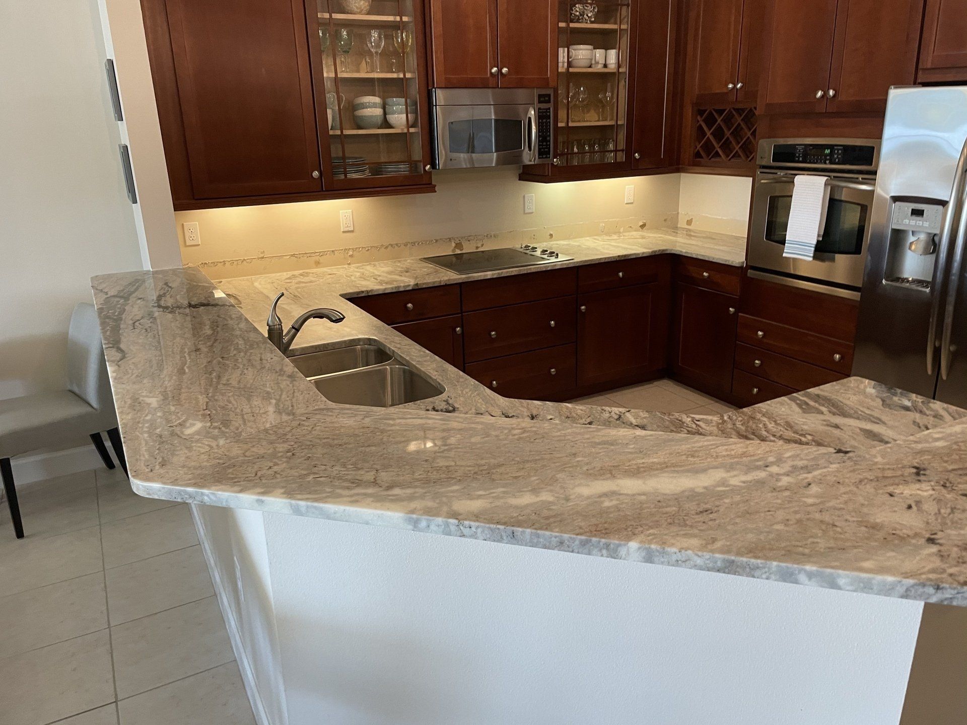 Take a look at the kitchen gallery below to see the beautiful custom countertops we install at Top Granite & Marble! Whether you're looking for granite, marble, or quartz countertops, we have high-quality options for you to choose from. Contact us today or fill out our online form for a FREE estimate on our kitchen countertop services!