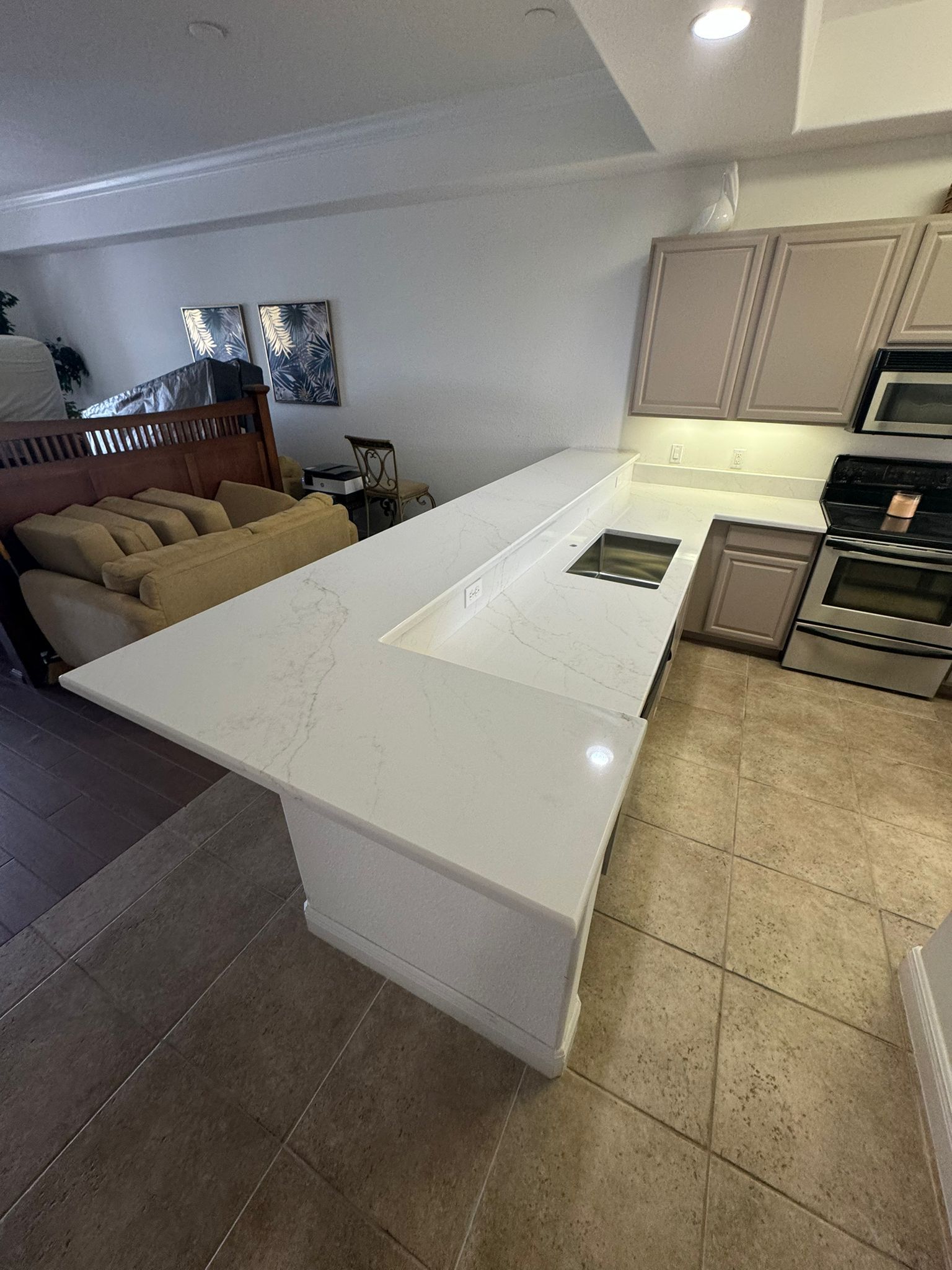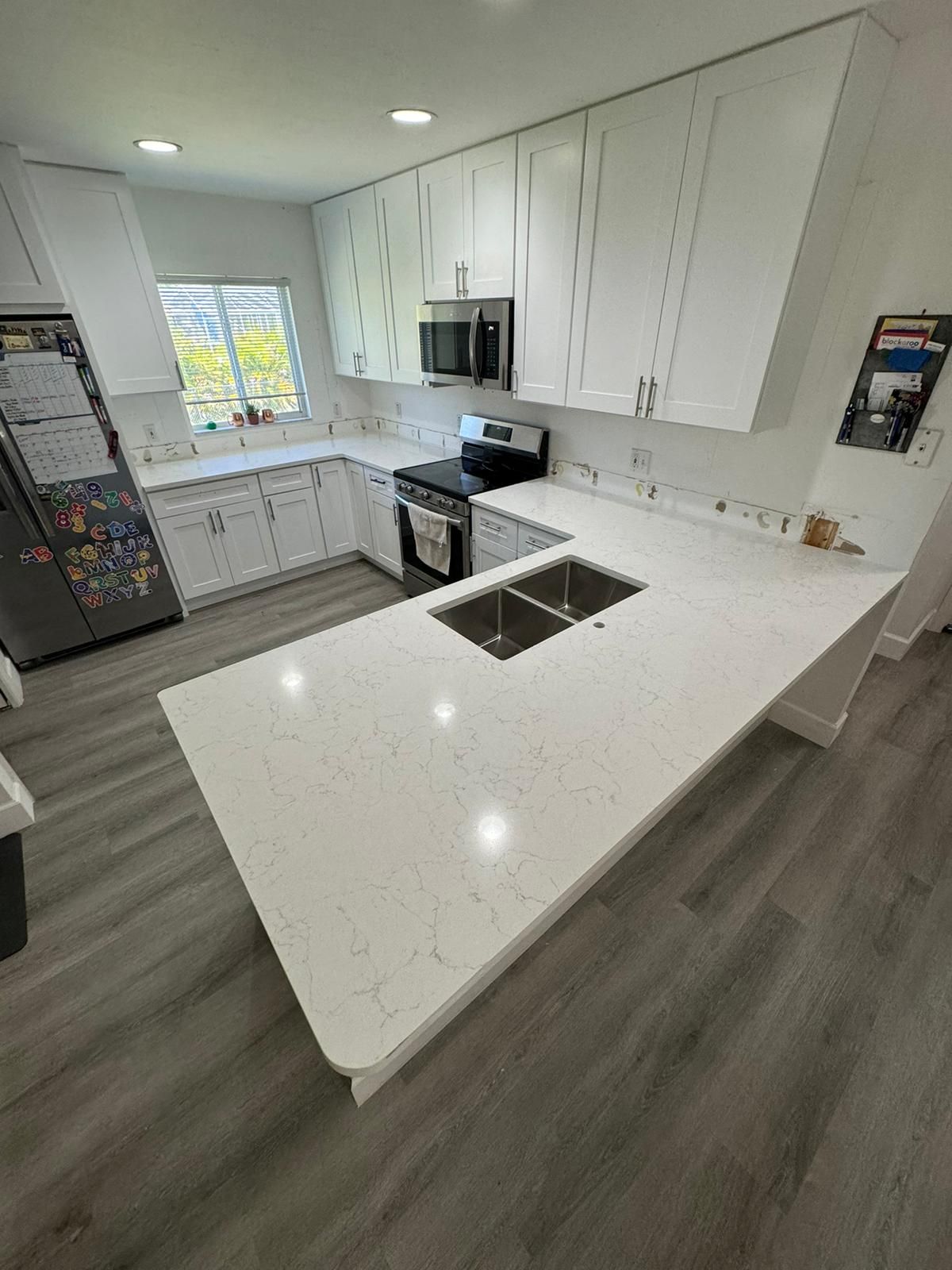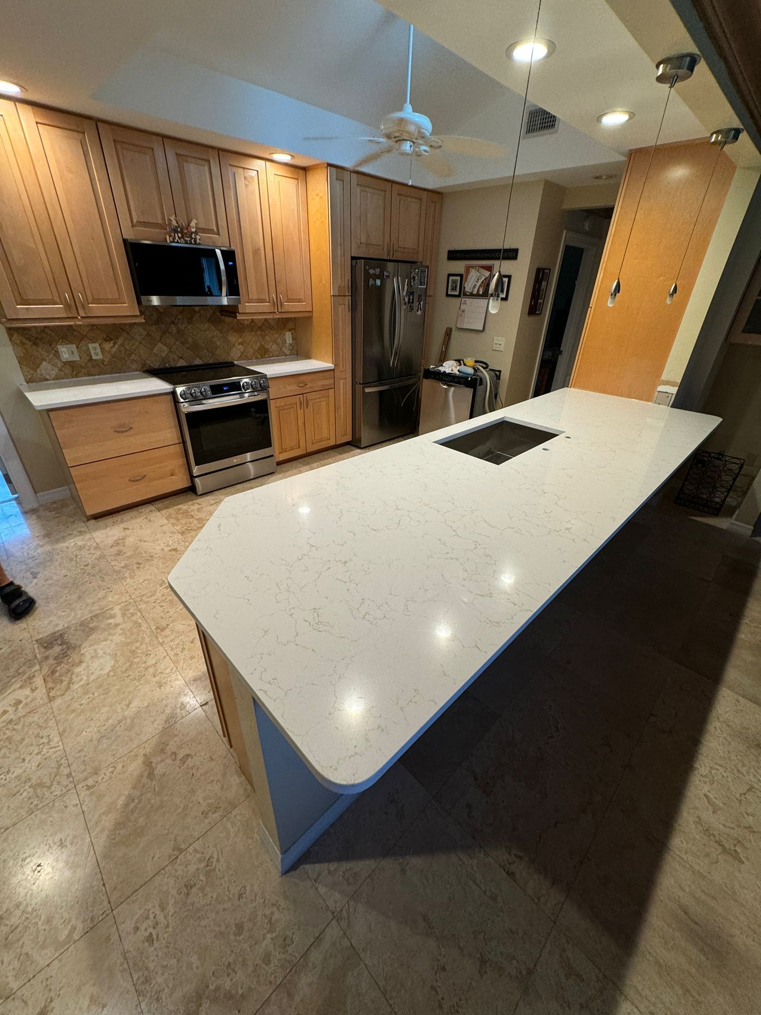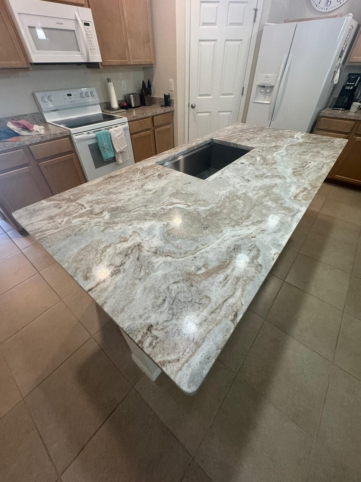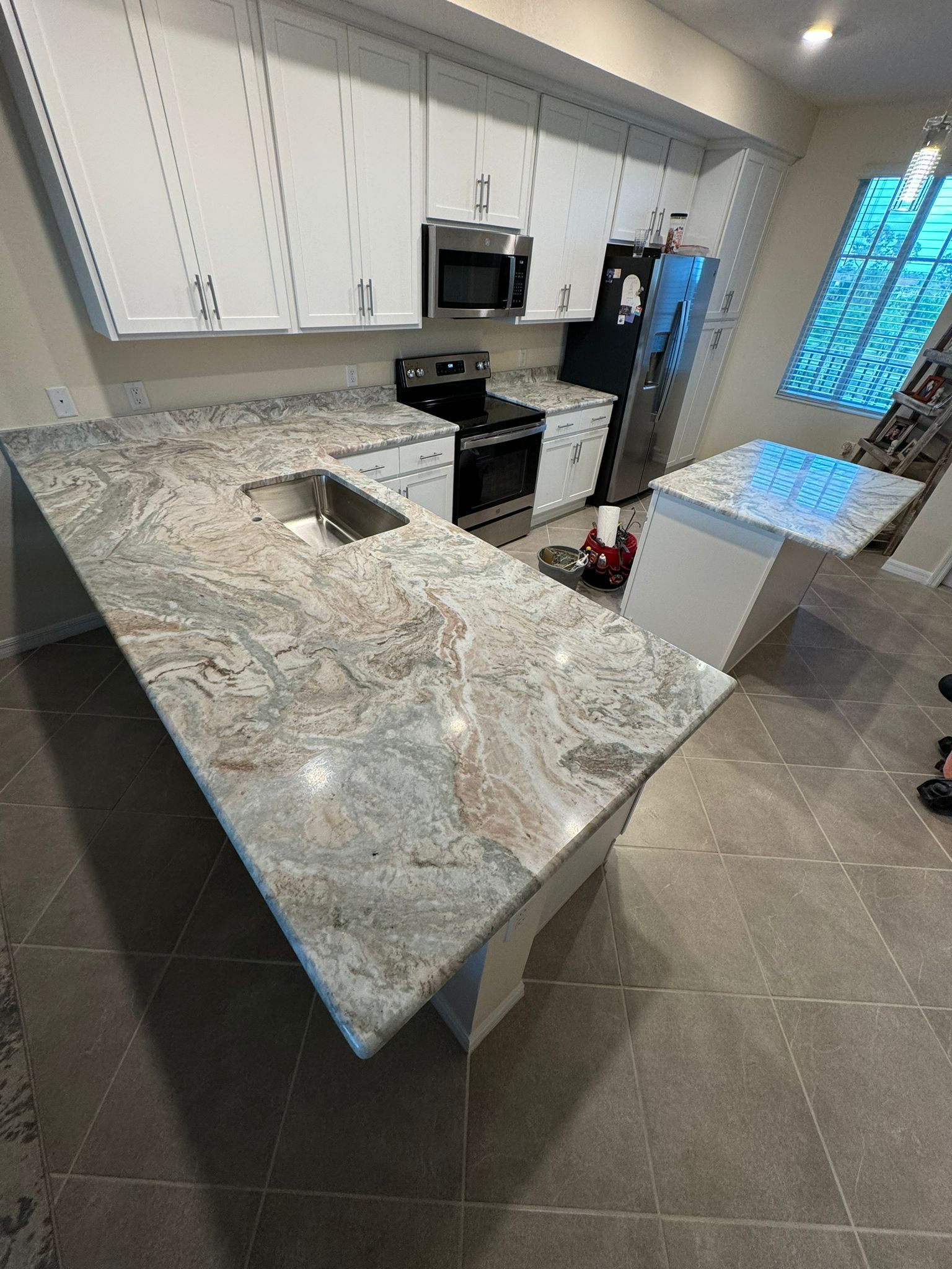 Take a look at the kitchen gallery below to see the beautiful custom countertops we install at Top Granite & Marble! Whether you're looking for granite, marble, or quartz countertops, we have high-quality options for you to choose from. Contact us today or fill out our online form for a FREE estimate on our kitchen countertop services!